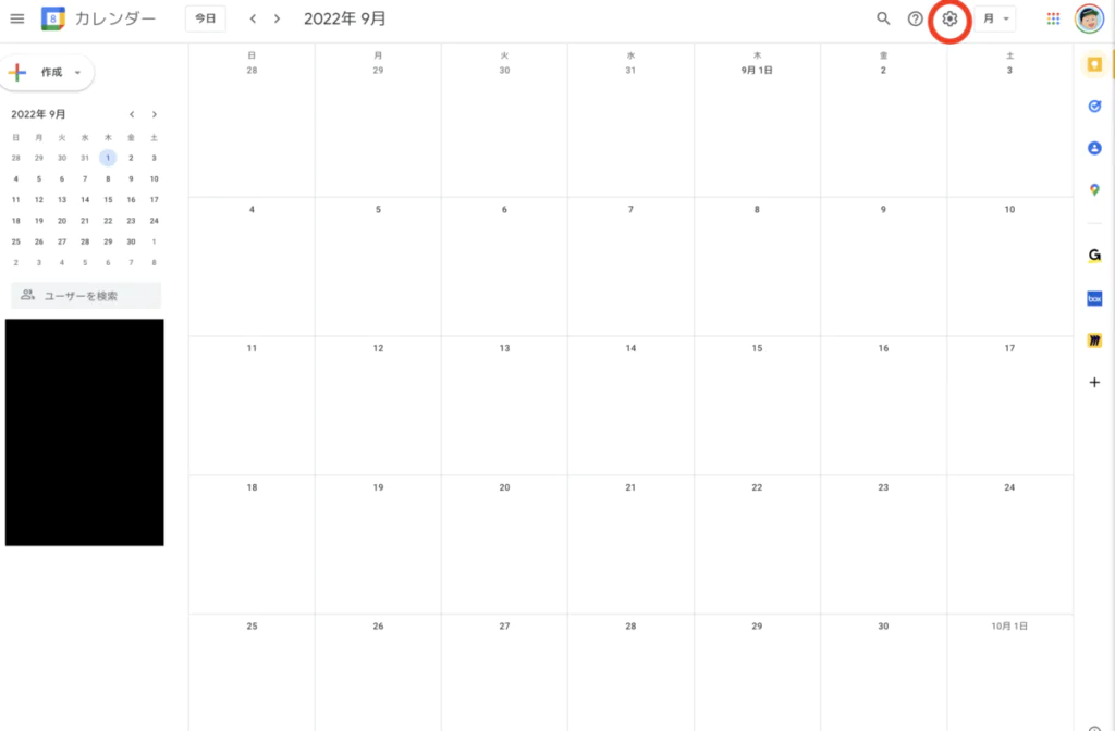 その後、赤で印をした設定アイコンをクリックしましょう。