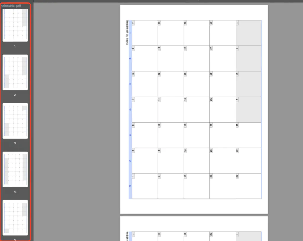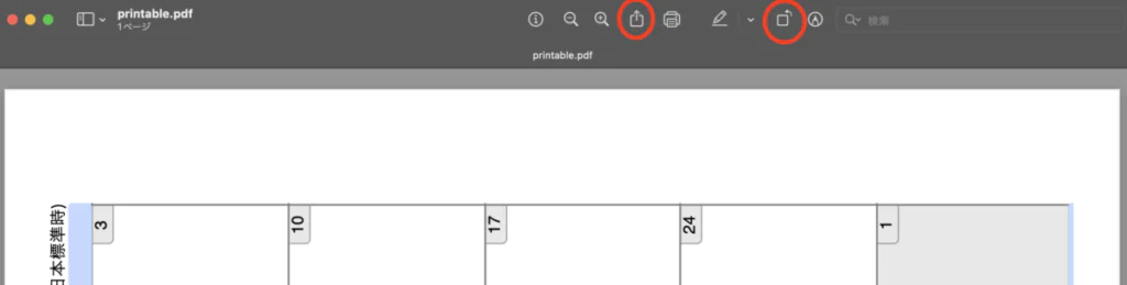 ちなみに、PDFにした場合、下記のように左に傾いた状態で出力されちゃいますので、一括操作で見やすくしましょう。