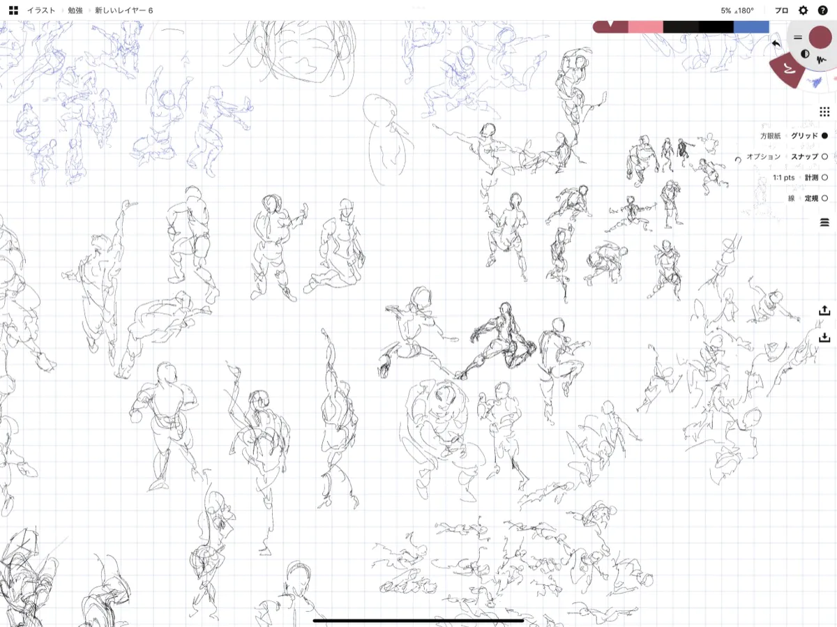 こちらは、随分前にクロッキーやってたページ…なんですが、縦や横にスクロールするとこんな規模でクロッキーをした後がこれでもかというぐらいに出てきます。笑